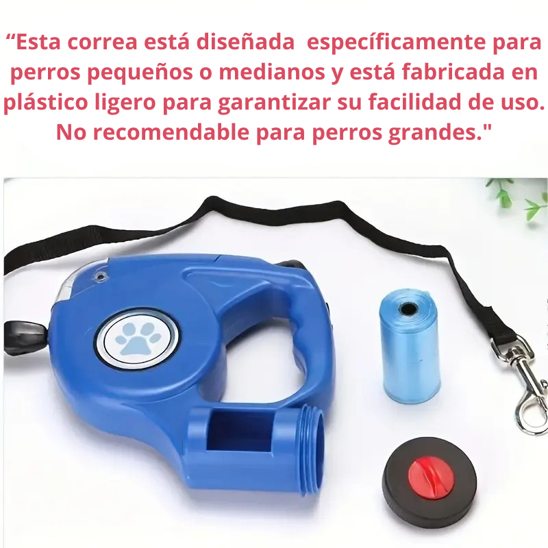 Nuestra correa extensible con compartimento para bolsas de excremento y luz LED integrada está diseñada para dueños de mascotas que valoran la comodidad, la funcionalidad y la seguridad en cada paseo.